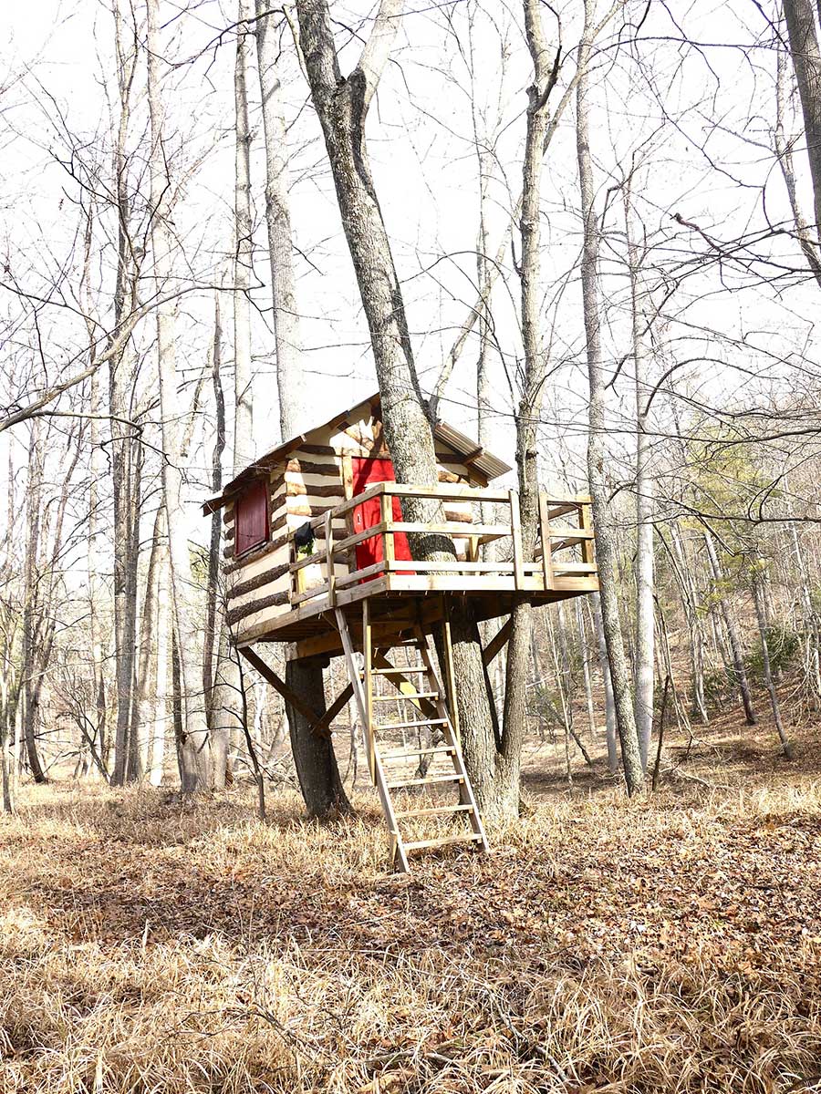 Just north of the fire pit you will find the sweetest little cabin tree house. This is the ultimate kid fort and has the best view of the river.